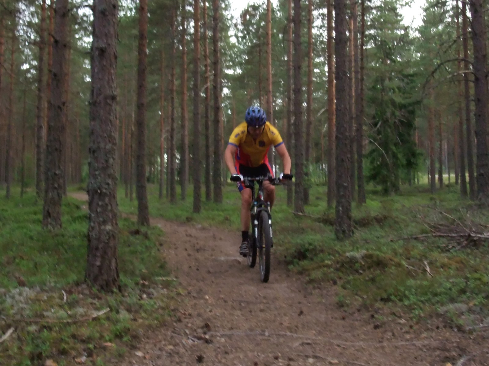 Större delen av stigen slingrade fram på en helt platt tallhed. Underlaget var sand i olika former med lite rötter här och där. Tekniskt okomplicerat men där sanden var lös så sög det fint i benen. Bara ett ordentligt igångdrag förutom starten och det var bara att mosa på allt vad man kunde. Det fanns dessutom en naturlig urtrampningssträcka då stigen inte startade och slutade på samma ställe. Ganska opti!